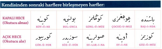 Bu tarz kelimelerin rahat okunabilmesi için, ya daha önceden bu kelimeyi görmüş ve doğrusunu birisi veya lügat yardımıyla okumuş olmalıyız, ya da cümle akışı içeriside mantıklı bir mana kazanacak şekil alıncaya kadar değişik şekillerde okumaya çalışmalıyız. Aşağıda konuyla alakalı bazı örnekler bulacaksınız.